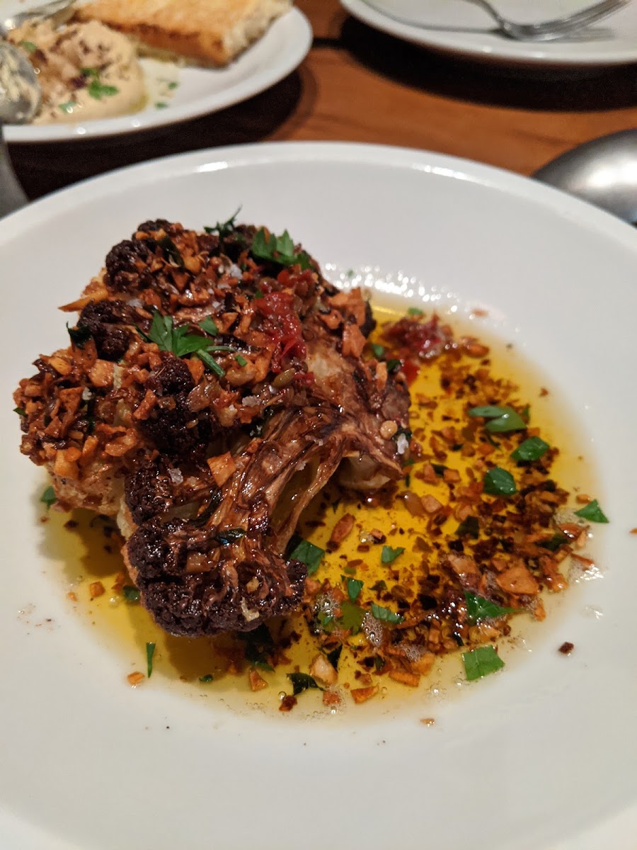 Great restaurant with a very nice ambience, perfect place for dinner. They have vegan options and vegan course menu — everything we tried was delicious and unique! Roasted cauliflower is a must! Wine selection was good too. People working there were extremely attentive and friendly